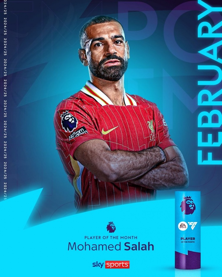 2025-03-13 21:00:396場6球4助攻!官方:利物浦邊鋒薩拉赫當(dāng)選英超聯(lián)賽2月最佳球員